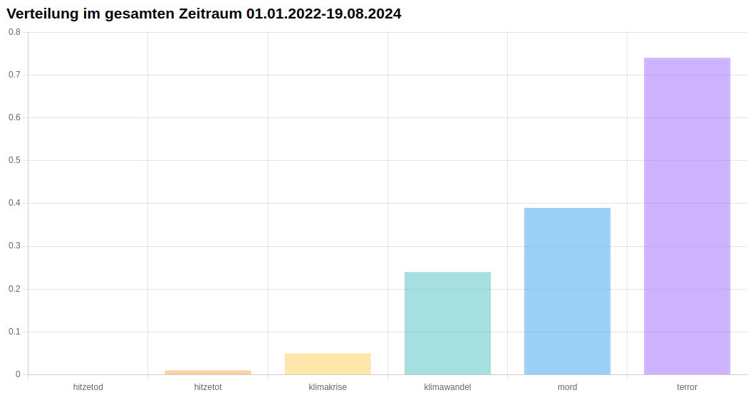 Dennoch werden in den Nachrichten die Themen Hitzetod/Hitzetot¹ und Klimakrise 10-70 mal seltener erwähnt als die Themen Mord und Terror.