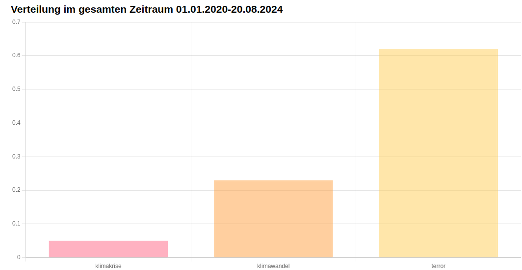 Gleichzeitig ist das Wort "Terror" in den letzten Jahren in den Nachrichten mehr als zehn mal so präsent wie das Wort "Klimakrise" und immerhin mehr als doppelt so häufig wie das Wort "Klimawandel".