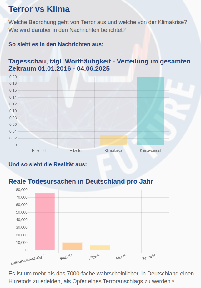 Die Gegenüberstellung von Todesursachen in Deutschland und der Berichterstattung über Terror und Klima in den Nachrichten